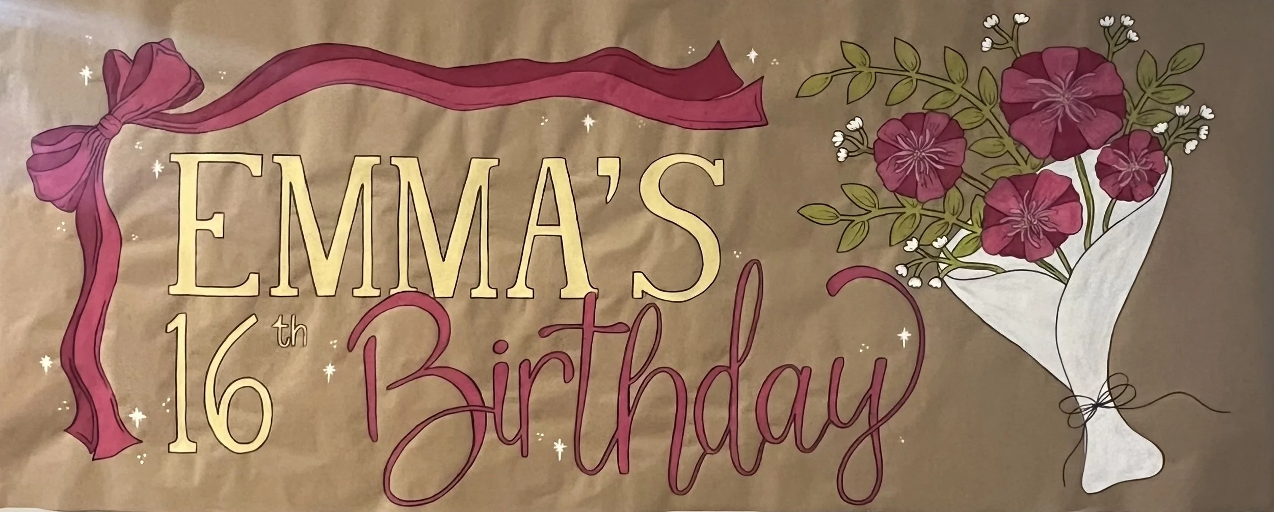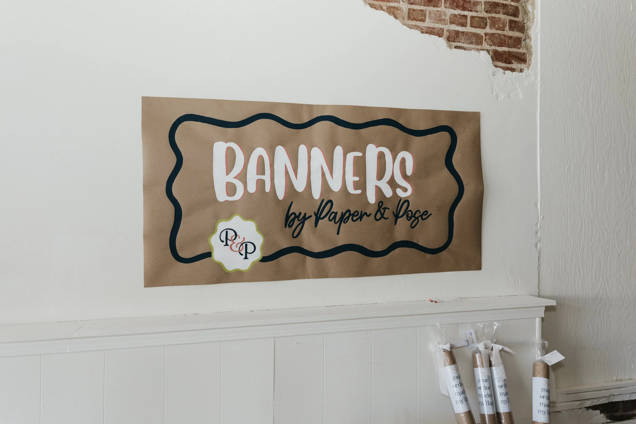 Our custom banners are painted on high-quality painter’s paper using durable acrylic paint. Each piece is hand-drawn, hand-painted, and made uniquely for your event. Every banner is fully customizable. After reaching out, you’ll receive a Google form to share your event details, color preferences, lettering style, themes, and any custom requests you’d like included.
